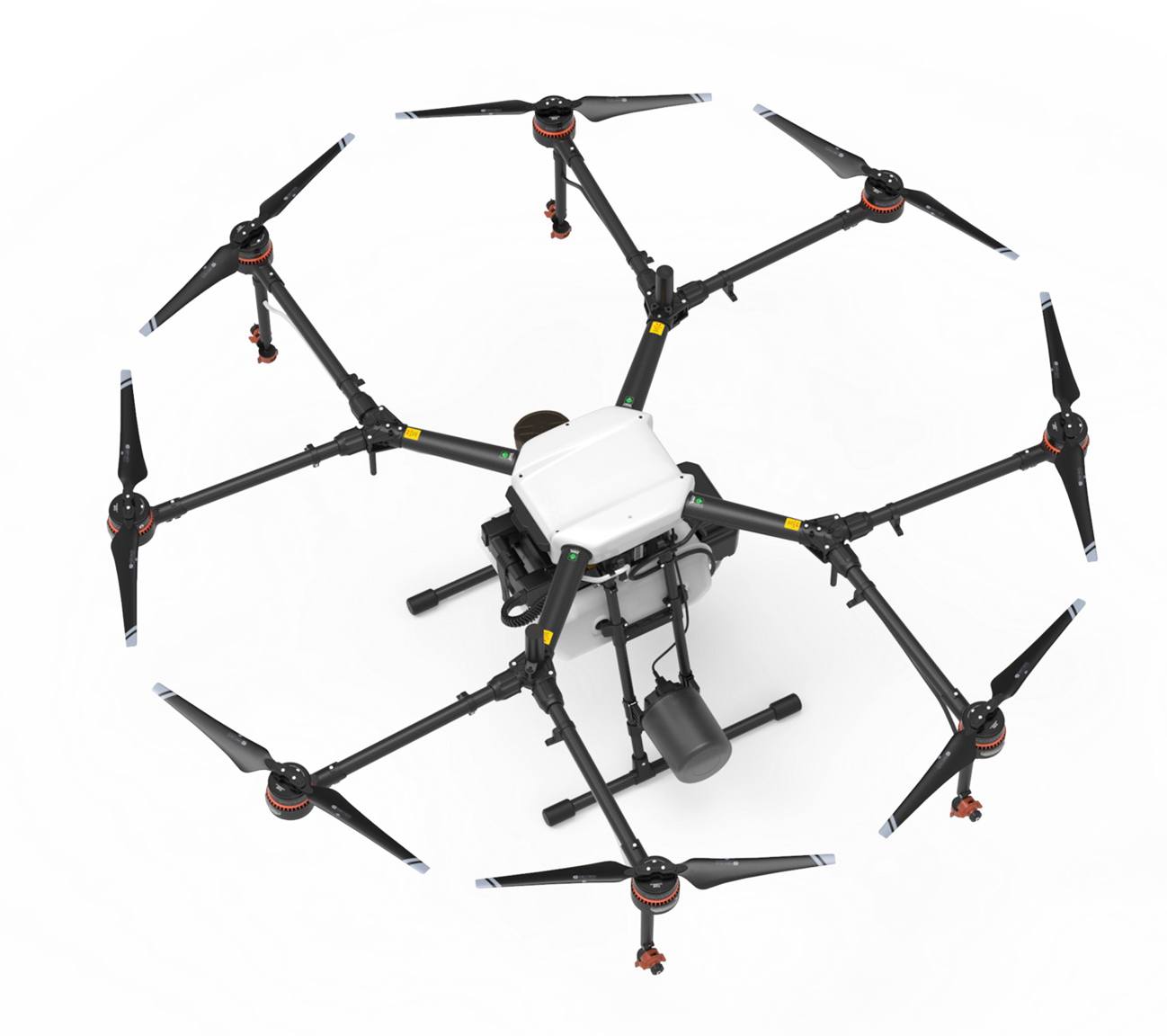 เครื่องยนต์ 8 ใบพัด รับน้ำหนักบรรทุกได้สูงสุด 10 กิโลกรัม สามารถใช้ พ่นปุ๋ย พ่นยาฆ่าแมลง พ่นยากำจัดวัชพืช ได้อย่างมีประสิทธิภาพ ครอบคลุมพื้นที่ประมาณ 25 ไร่ต่อชั่วโมง บินครอบคลุมพื้นที่ได้ 7 เมตรต่อวินาที พ่นสเปรย์น้ำยาที่รัศมี 4-6 เมตร เร็วกว่าการพ่นทั่วไปถึง 60 เท่า