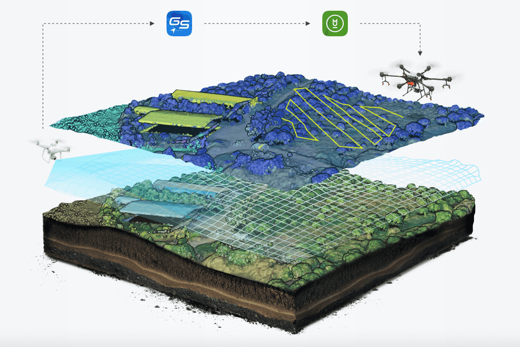 ภาพด้านล่างนี้จะเห็นว่าสามารถใช้งานร่วมกับ DJI Phantom 4 RTK ในการวางตำแหน่งได้ในระดับเซนติเมตร แล้วเก็บข้อมูลเป็นภาพถ่ายที่มีความแม่นยำสูง จากนั้นใช้ DJI Terra เพื่อสร้างแบบจำลอง 2D/ 3D ให้สมบูรณ์ แล้วใช้แพลตฟอร์มจัดการการเกษตรของ DJI ในการกำหนดเส้นทางปฏิบัติการให้กับทีม เสร็จเรียบร้อยก็นำ DJI AGRAS T16 ขึ้นบินได้เลยครับ