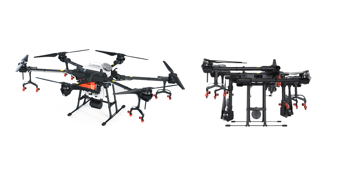 การออกแบบตัวบอดี้ของ DJI AGRAS T16 ช่วยให้การประกอบใช้งานและการจัดเก็บง่ายยิ่งขึ้น โดยส่วนของใบพัดและตัวแขนสามารถพับเก็บได้ สะดวกต่อการขนย้าย อีกทั้งแบตเตอรี่และถังสเปรย์สามารถถอดเปลี่ยนได้ ช่วยให้คุณบินได้แบบเต็มอิ่มและเปลี่ยนน้ำยาได้เต็มที่
