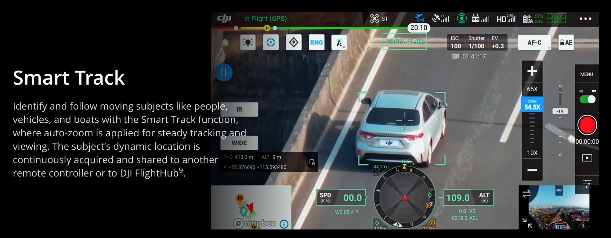 - zenmuse h20t (กล้องซูม + เลนซ์ wide + เลนซ์วัดระยะ + กล้องตรวจจับความร้อน)
