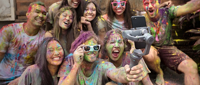 มาพร้อมกันสั่น 3 แกน และปุ่มควบคุมการถ่ายวิดีโอผ่าน Smartphone ทำงานร่วมกับ Application DJI Go ซึ่งมีฟีเจอร์การถ่ายต่างๆมากมาย อาทิ Active Track ติดตามวัตถุหรือบุคคล, Slow-Mo, Hyperlapse, Motionlapse, Timelapse เชื่อมต่อผ่าน Bluetooth LE 4.0