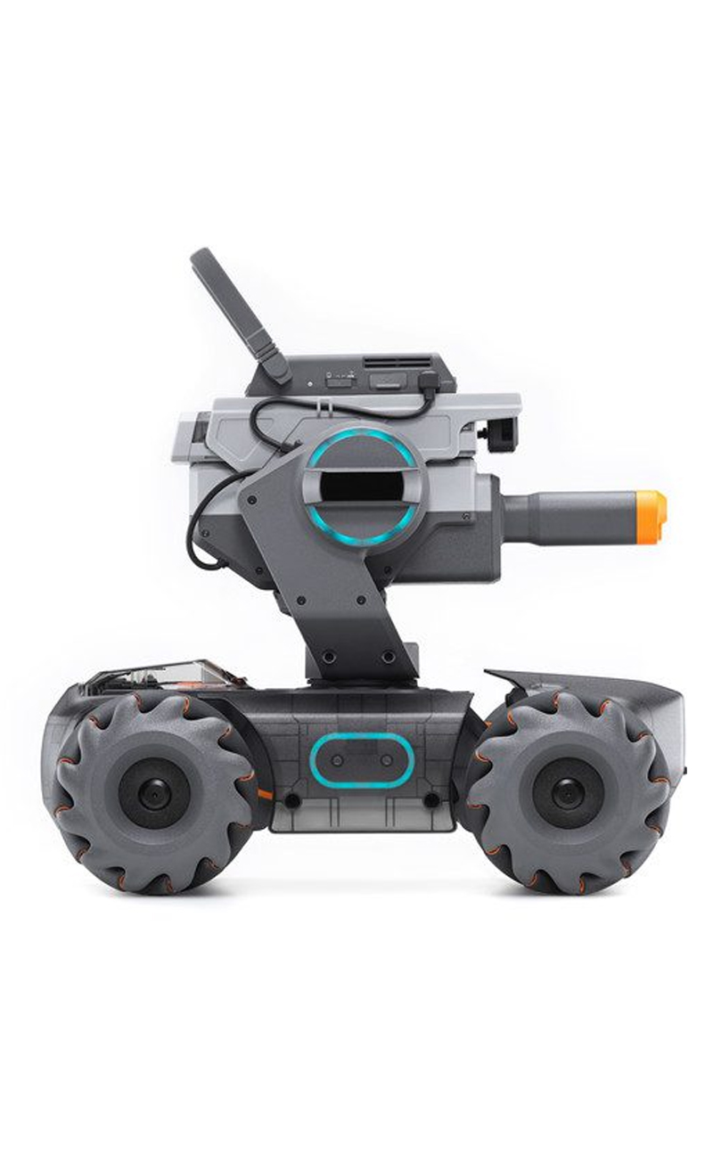 DJI Robomaster S1 หุ่นยนต์รถถังอัจฉริยะจาก DJI ออกแบบมาเพื่อเสริมสร้างความรู้ให้ทุกเพศ ทุกวัย โดยเน้นไปที่ วิทยาศาสตร์ คณิตศาสตร์ ฟิสิกส์ และการเขียนโปรแกรม หุ่นยนต์ DJI Robomaster S1 ใช้ CPU อัจฉริยะควบคุม รับคำสั่งและตอบสนองได้ฉับไว มี AI ที่เรียนรู้การสั่งการแบบอื่นๆ ได้ มีปืน Blaster อาวุธคู่ใจที่เป็นหนึ่งในเครื่องมือการเรียนรู้แสนสนุก ยิงเม็ดเจลพร้อมรังสีอินฟราเรด โดยมีเสียงประกอบและการจำลองแรงถีบของปืนด้วย หุ่นยนต์ Robomaster S1 มีเกราะ 6 จุดที่รับสัญยาณจากจากเม็ดเจลและแสงอินฟราเรดได้ ใช้จัดการแข่งขันการต่อสู้ระหว่างหุ่นยนต์ได้เลย ด้านหน้าของหุ่น Robomaster S1 มีกล้องติดกิมบาล แสดงมุมกล้องแบบบุคคลที่หนึ่งถ่ายทอดไปยังแท็บเล็ต โดยภาพไม่สั่นไหว แม้จะเคลื่อนที่อยู่ ขับเคลื่อนด้วยระบบ 4 ล้อ ที่เคลื่อนที่ไปได้ทุกทิศทาง นอกจากนี้ Robomaster S1 ยังรองรับการเขียนโปรแกรม Scratch และ Python เพื่อเคลื่อนไหวตามคำสั่งได้ นับเป็นความสนุกที่มาพร้อมความรู้อย่างแท้จริง